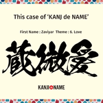 The name “Zaviyar” has been transformed into an elegant Japanese Kanji expression inspired by the theme of Love(愛).